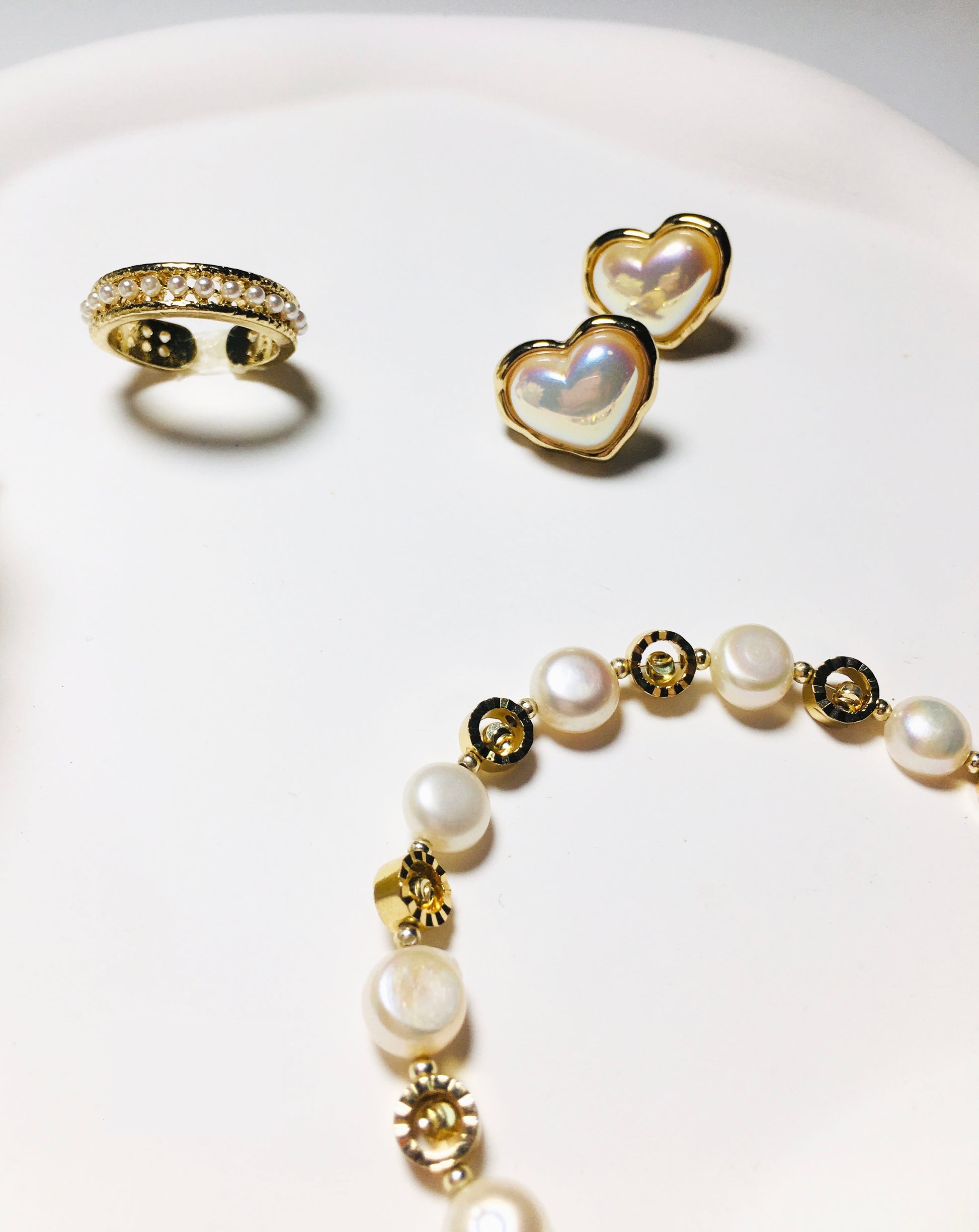 Wear a pair of delicate heart-shaped earrings, irregularly shaped pearls bracelets have a natural beauty.