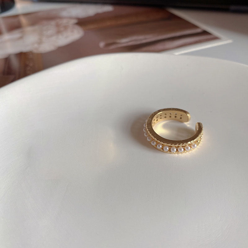Heart Earrings & Asymmetric Pearl Link Chain Bracelet, Ring Jewelry set