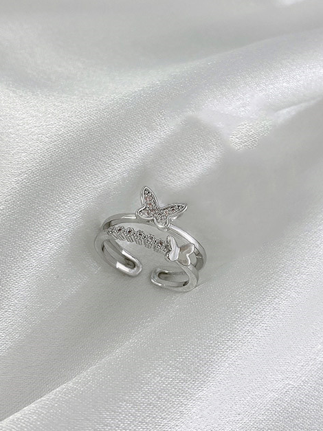 Layered Butterfly & Rhinestone Decor Charm Necklace & Ring Jewelry Set