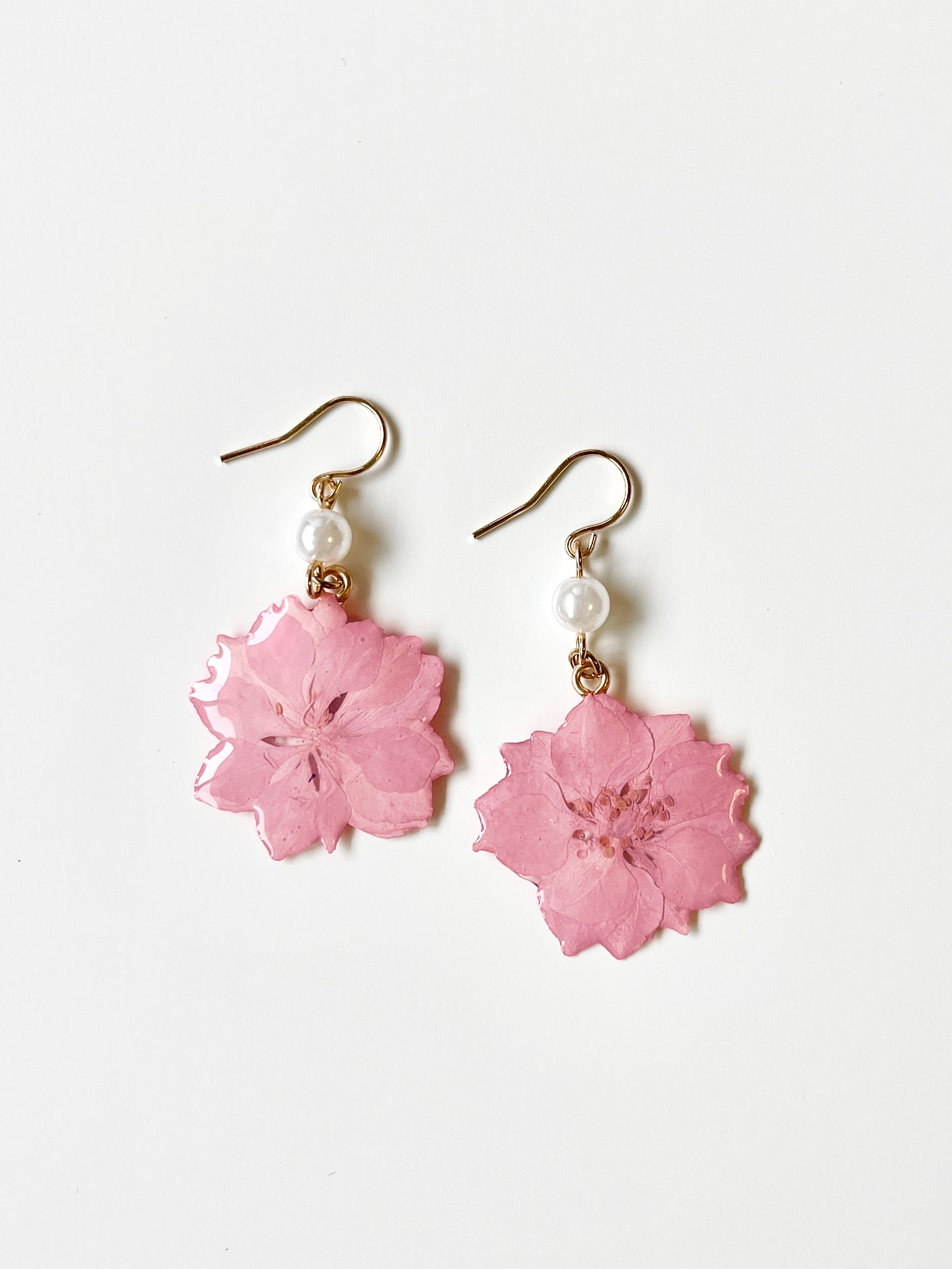 Pink Dried Larkspur Pearl Earrings