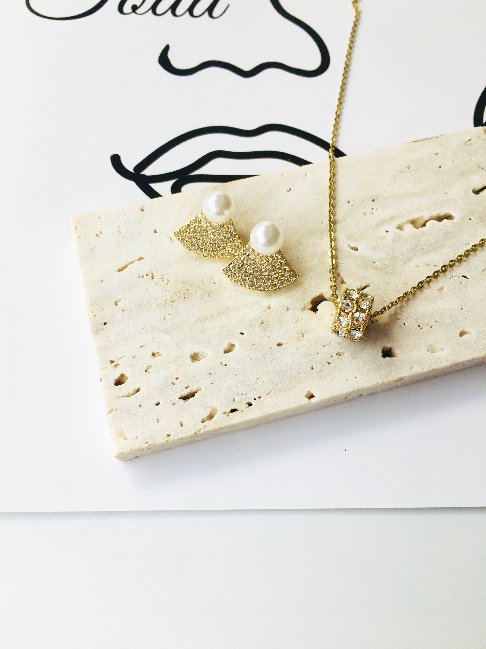 The earrings are designed with apricot leaves and pearls to symbolize tenacity and composure, with gold plating giving you a sense of luxury.